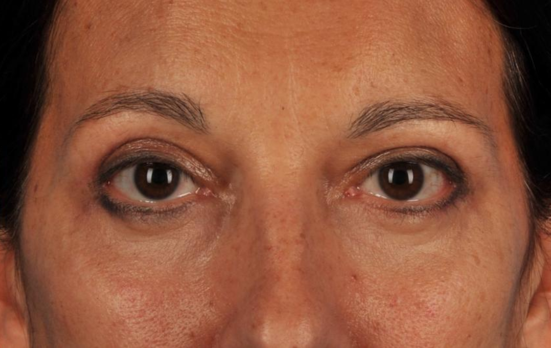 Se observa una mejora significativa: las ojeras se ven más claras, las bolsas menos abultadas y el contorno del ojo presenta mayor homogeneidad, tono saludable y textura más suave.