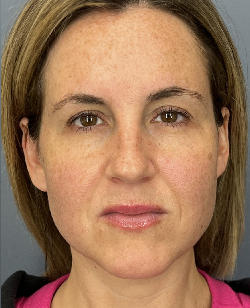 Las imágenes muestran una reducción clara de las líneas de expresión, mayor suavidad en la piel, un tono más uniforme y un rostro visiblemente más descansado y revitalizado.